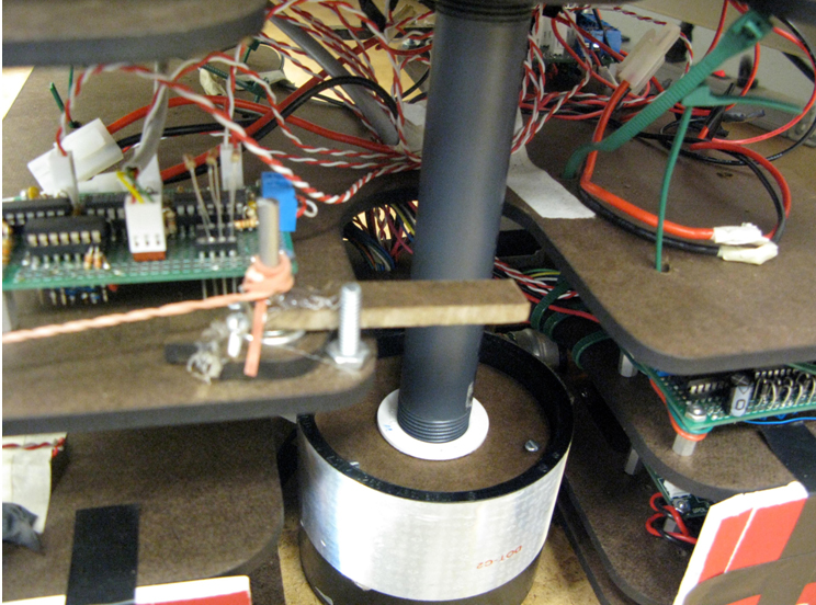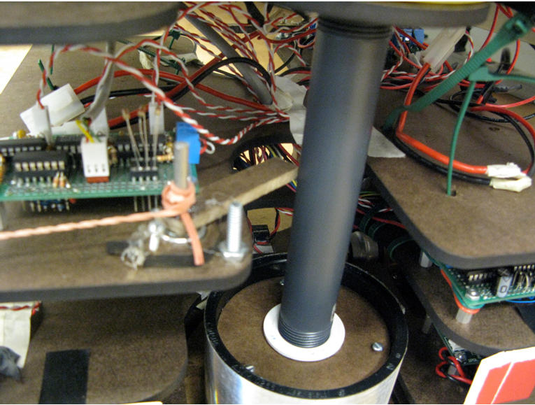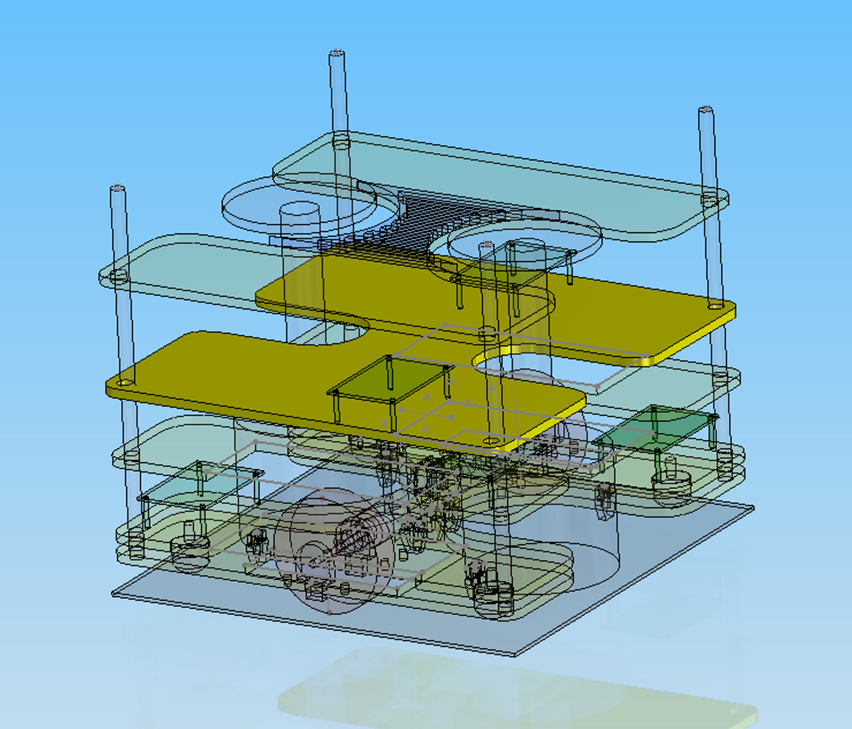 The flag grabber level features a mechanical one-way trap door (bottom right) that closes when a flag enters the cavity. To accomplish flag grabbing, the one-way mechanical valve has a trap door attached to a swivel shaft, a mechanical stop to hold a trap door in place, and an elastic band to allow for repositioning when a flag is fully inserted in the cavity. The succession of a flag entering the flag cavity, extending the trap door, and the trap door snapping back into place is shown below.