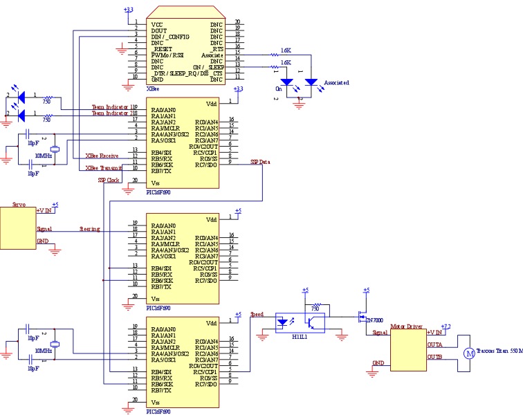 The master PIC is dedicated to asynchronous communication with the XBee.inter-PIC comm.