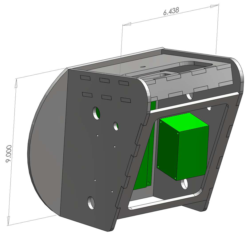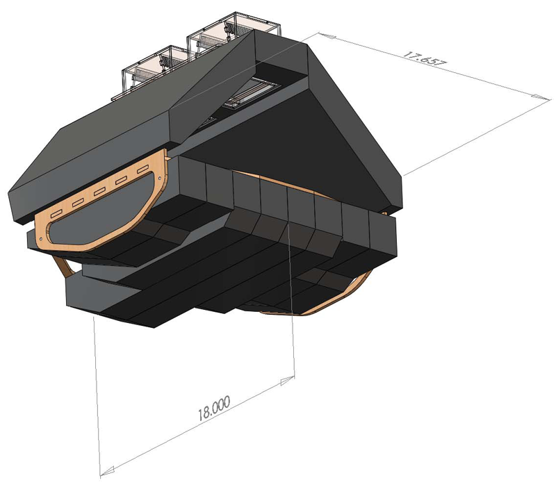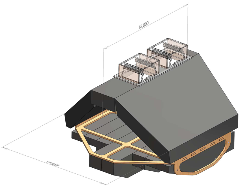 the hull with a length to width aspect ratio of about 1:1.  We also placed the motors